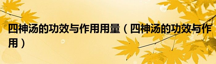 四神湯的功效與作用用量(四神湯的功效與作用)