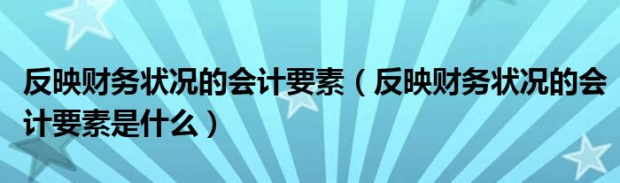 反映財務(wù)狀況的會計要素(反映財務(wù)狀況的會計要素是什么)