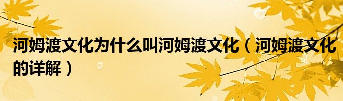 河姆渡文化為什么叫河姆渡文化(河姆渡文化的詳解)