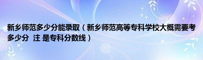 新鄉(xiāng)師范多少分能錄?。ㄐ锣l(xiāng)師范高等??茖W(xué)校大概需要考多少分 注 是專科分?jǐn)?shù)線)