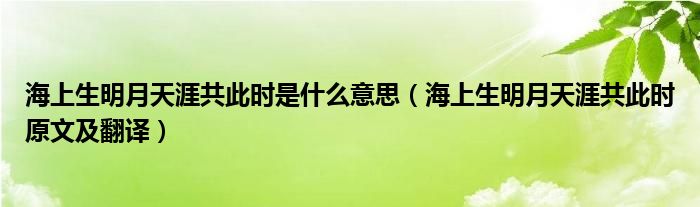 各位網(wǎng)友們好,我是編輯小夏,為大家解答海上生明月天涯共此時(shí)是什么意思,海上生明月天涯共此時(shí)原文及翻譯問題。一起往下看看