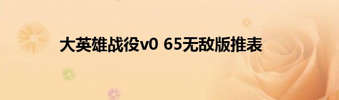 大家好,小聯(lián)來為大家解答以上的問題。大英雄戰(zhàn)役v0 65無敵版推表這個很多人還不知道,現(xiàn)在讓我們一起來看看吧!