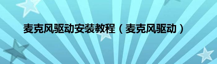 麥克風驅(qū)動安裝教程(麥克風驅(qū)動)