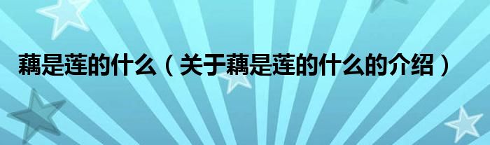 藕是蓮的什么(關(guān)于藕是蓮的什么的介紹)