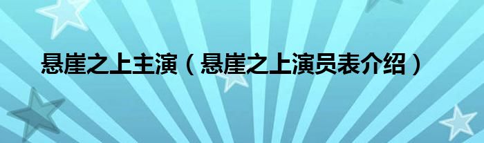 各位網(wǎng)友們好,我是編輯小夏,為大家解答懸崖之上主演,懸崖之上演員表介紹問(wèn)題。一起往下看看