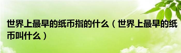 世界上最早的紙幣指的什么(世界上最早的紙幣叫什么)