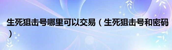 生死狙擊號(hào)哪里可以交易(生死狙擊號(hào)和密碼)