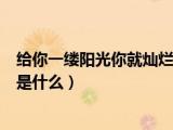 大家好,小夏來為大家講解下。給你一縷陽光你就燦爛下一句,給你陽光你就燦爛的下一句是什么很多人還不知道,現(xiàn)在讓我們一起來看看吧!1、 瀏覽全文>>