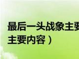 最后一頭戰(zhàn)象主要內(nèi)容是什么,最后一頭戰(zhàn)象主要內(nèi)容這個(gè)很多人還不知道,小飛來(lái)為大家解答以上的問(wèn)題。現(xiàn)在讓我們一起來(lái)看看吧!1、主要內(nèi)容 瀏覽全文>>
