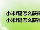 大家好,小常來為大家解答以上問題。小米f碼怎么獲得,小米f碼怎么獲得,教給你小米f碼怎么獲得很多人還不知道,現(xiàn)在讓我們一起來看看吧!1 瀏覽全文>>