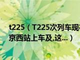 大家好,小常來為大家解答以上問題。t225,T225次列車現(xiàn)在始發(fā)站到底在哪以前我一直是在北京西站上車及,這 很多人還不知道,現(xiàn)在讓我們一 瀏覽全文>>