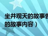 各位網(wǎng)友們好,我是編輯小夏,為大家解答坐井觀天的故事告訴我們什么道理,坐井觀天的故事內(nèi)容問題。一起往下看看1、《坐井觀天》這個故事 瀏覽全文>>
