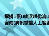 大家好,小常來為大家解答以上問題。鑵捐寰俊浜哄伐瀹㈡湇鍦ㄧ嚎鐢?shù)璇?,微信人工客服在線咨詢(騰訊微信人工客服在線咨詢)很多人還不知 瀏覽全文>>