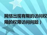 大家好,今天小悅來(lái)為大家解答以上問(wèn)題。網(wǎng)絡(luò)出現(xiàn)有限的訪問(wèn)權(quán)限是什么原因,如何處理網(wǎng)絡(luò)出現(xiàn)有限的權(quán)限訪問(wèn)問(wèn)題很多人還不知道,現(xiàn)在讓我 瀏覽全文>>