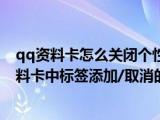 大家好,今天小悅來為大家解答以上問題。qq資料卡怎么關(guān)閉個(gè)性標(biāo)簽,QQ2013個(gè)人資料卡 迷你資料卡中標(biāo)簽添加 取消的方法很多人還不知道,現(xiàn) 瀏覽全文>>