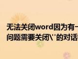 大家好,今天小悅來為大家解答以上問題。無法關(guān)閉word因?yàn)橛幸粋€對話框,word打開時提示"遇到問題需要關(guān)閉"的對話框,怎么辦?很多人還不知道 瀏覽全文>>
