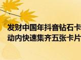大家好,今天小悅來為大家解答以上問題。發(fā)財中國年抖音鉆石卡怎么獲得,如何在抖音發(fā)財中國年活動內(nèi)快速集齊五張卡片很多人還不知道,現(xiàn)在 瀏覽全文>>
