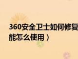 大家好,今天小悅來為大家解答以上問題。360安全衛(wèi)士如何修復(fù)藍(lán)屏,360安全衛(wèi)士系統(tǒng)藍(lán)屏修復(fù)功能怎么使用很多人還不知道,現(xiàn)在讓我們一起來 瀏覽全文>>