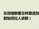 大家好,小太來為大家解答以上問題。在微信群里怎樣邀請別人加入群聊,如何邀請別人加入微信群如何拉人進群很多人還不知道,現(xiàn)在讓我們一起 瀏覽全文>>