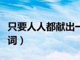 各位網(wǎng)友們好,我是編輯小夏,為大家解答只要人人都獻(xiàn)出一點(diǎn)愛是什么歌,愛的奉獻(xiàn)歌詞問題。一起往下看看1、歌名:《愛的奉獻(xiàn)》2、歌詞:3 瀏覽全文>>