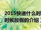 大家好,小夏來為大家解答以上的問題。2015快遞什么時候放假,關(guān)于2015快遞什么時候放假的介紹很多人還不知道,現(xiàn)在讓我們一起來看看吧!1 瀏覽全文>>