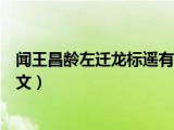 大家好,小聯(lián)來為大家解答以上的問題。聞王昌齡左遷龍標(biāo)遙有此寄原文朗誦,聞王昌齡左遷龍標(biāo)原文這個(gè)很多人還不知道,現(xiàn)在讓我們一起來看看吧 瀏覽全文>>