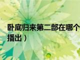 大家好,小聯(lián)來為大家解答以上的問題。臥底歸來第二部在哪個衛(wèi)視播出,臥底歸來第二部什么時候播出這個很多人還不知道,現(xiàn)在讓我們一起來看看 瀏覽全文>>