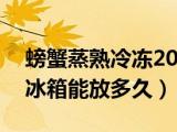 大家好,小樂來為大家解答以下的問題,螃蟹蒸熟冷凍20天還能吃嗎,螃蟹煮好了放冰箱能放多久很多人還不知道,現(xiàn)在讓我們一起來看看吧!1、 瀏覽全文>>