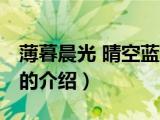 大家好,小都來(lái)為大家解答以上的問(wèn)題。薄暮晨光 晴空藍(lán)兮,關(guān)于薄暮晨光 晴空藍(lán)兮的介紹很多人還不知道,現(xiàn)在讓我們一起來(lái)看看吧!1、晴 瀏覽全文>>