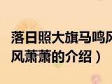 大家好,小都來(lái)為大家解答以上的問(wèn)題。落日照大旗馬鳴風(fēng)蕭蕭,關(guān)于落日照大旗馬鳴風(fēng)蕭蕭的介紹很多人還不知道,現(xiàn)在讓我們一起來(lái)看看吧!1 瀏覽全文>>