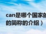大家好,小都來為大家解答以上的問題。can是哪個國家的簡稱,關(guān)于can是哪個國家的簡稱的介紹很多人還不知道,現(xiàn)在讓我們一起來看看吧!1、c 瀏覽全文>>