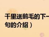 大家好,小都來為大家解答以上的問題。千里送鵝毛的下一句,關于千里送鵝毛的下一句的介紹很多人還不知道,現(xiàn)在讓我們一起來看看吧!1、緬 瀏覽全文>>
