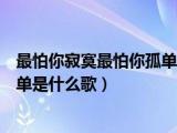 哈嘍,小天來(lái)為大家解答以下的問題,關(guān)于最怕你寂寞最怕你孤單是什么歌原唱,最怕你寂寞最怕你孤單是什么歌這個(gè)很多人還不知道,那么現(xiàn)在讓我 瀏覽全文>>