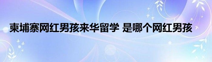 柬埔寨網(wǎng)紅男孩來華留學(xué) 是哪個網(wǎng)紅男孩