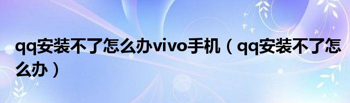 qq安裝不了怎么辦vivo手機(qq安裝不了怎么辦)