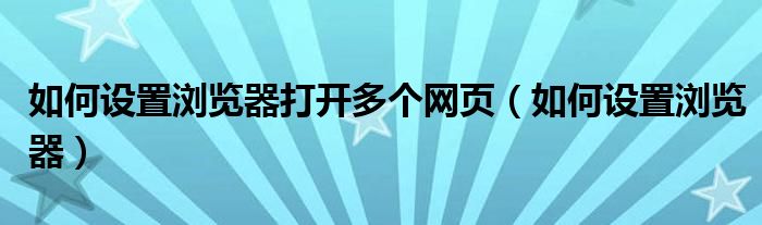 如何設置瀏覽器打開多個網(wǎng)頁(如何設置瀏覽器)