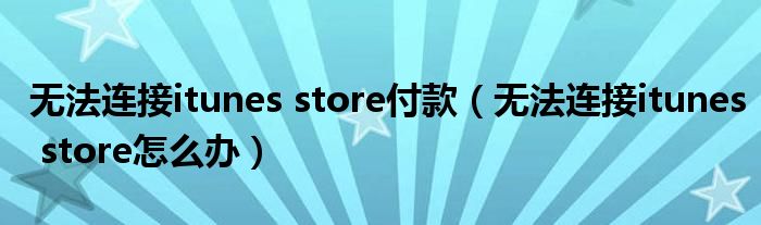 無法連接itunes store付款(無法連接itunes store怎么辦)