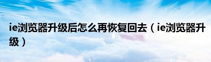 ie瀏覽器升級(jí)后怎么再恢復(fù)回去(ie瀏覽器升級(jí))