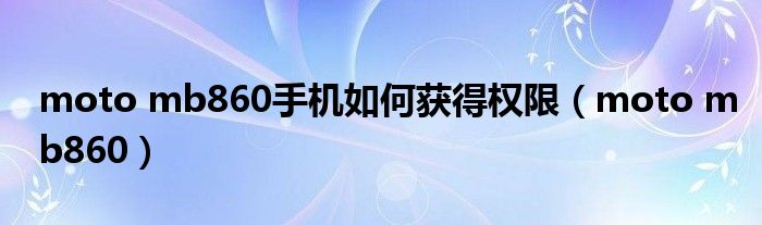 moto mb860手機如何獲得權(quán)限(moto mb860)