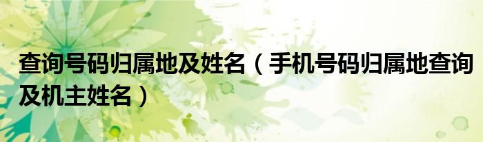 查詢號碼歸屬地及姓名(手機(jī)號碼歸屬地查詢及機(jī)主姓名)