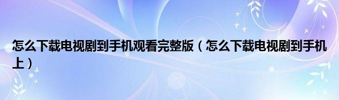 怎么下載電視劇到手機(jī)觀看完整版(怎么下載電視劇到手機(jī)上)
