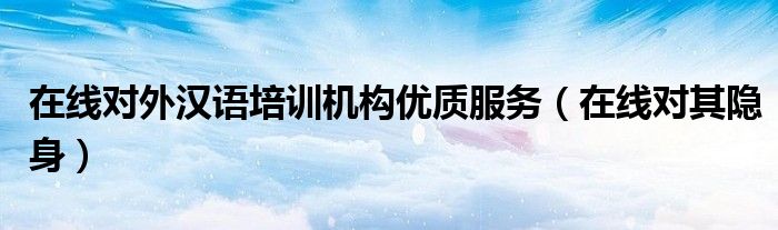 在線對(duì)外漢語培訓(xùn)機(jī)構(gòu)優(yōu)質(zhì)服務(wù)(在線對(duì)其隱身)