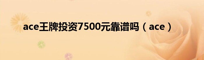 大家好,雨雨來(lái)為大家解答以上問(wèn)題,ace王牌投資7500元靠譜嗎,ace很多人還不知道,現(xiàn)在讓我們一起來(lái)看看吧!