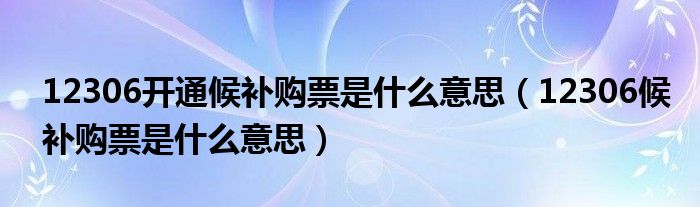 大家好,雨雨來為大家解答以上問題,12306開通候補購票是什么意思,12306候補購票是什么意思很多人還不知道,現(xiàn)在讓我們一起來看看吧!