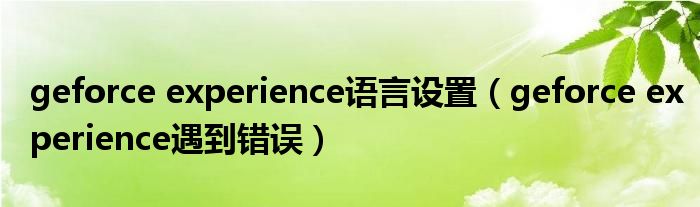 geforce experience語言設(shè)置(geforce experience遇到錯(cuò)誤)