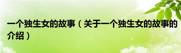 一個獨生女的故事(關(guān)于一個獨生女的故事的介紹)