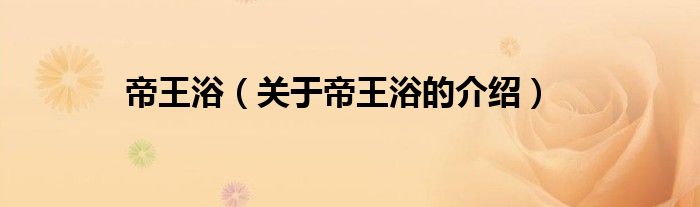 大家好,小都來為大家解答以上的問題。帝王浴,關(guān)于帝王浴的介紹很多人還不知道,現(xiàn)在讓我們一起來看看吧!