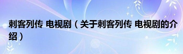 刺客列傳 電視?。P(guān)于刺客列傳 電視劇的介紹)