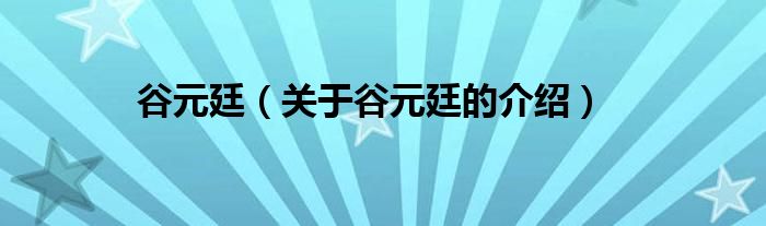 大家好,小都來為大家解答以上的問題。谷元廷,關(guān)于谷元廷的介紹很多人還不知道,現(xiàn)在讓我們一起來看看吧!