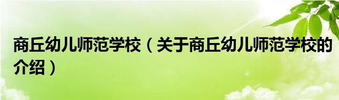 商丘幼兒師范學校(關于商丘幼兒師范學校的介紹)